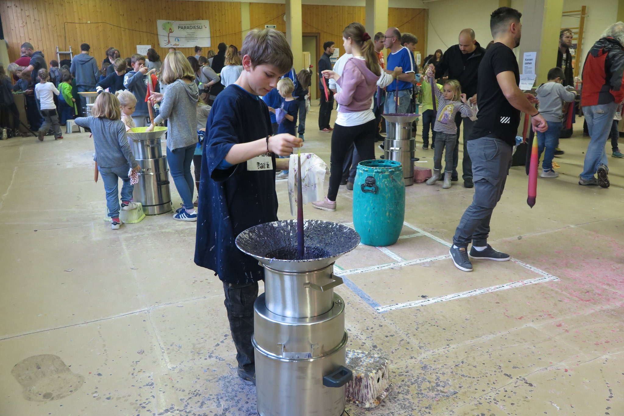 Wachstöpfe, Heizplatten, schwere Säcke mit Paraffin (Rohmaterial für Kerzenwachs), kistenweise Kleinmaterial wie Lumpen, Formen etc.: Jedes Jahr hat das Team des Böjuer Kerzenziehens einen ganzen Lastwagen voll Material in den Keller des Steineggli-Schulhauses transportiert, bevor der beliebte Familienanlass dort stattfinden konnte.
