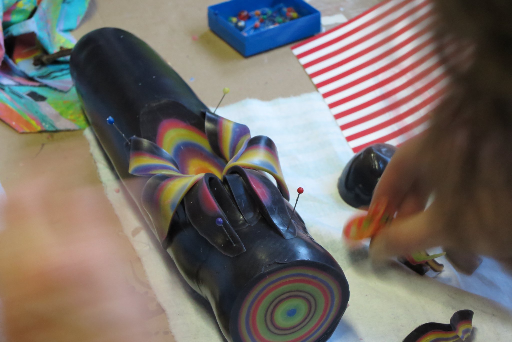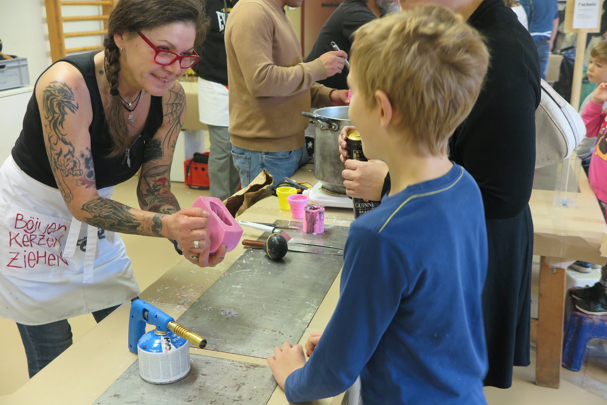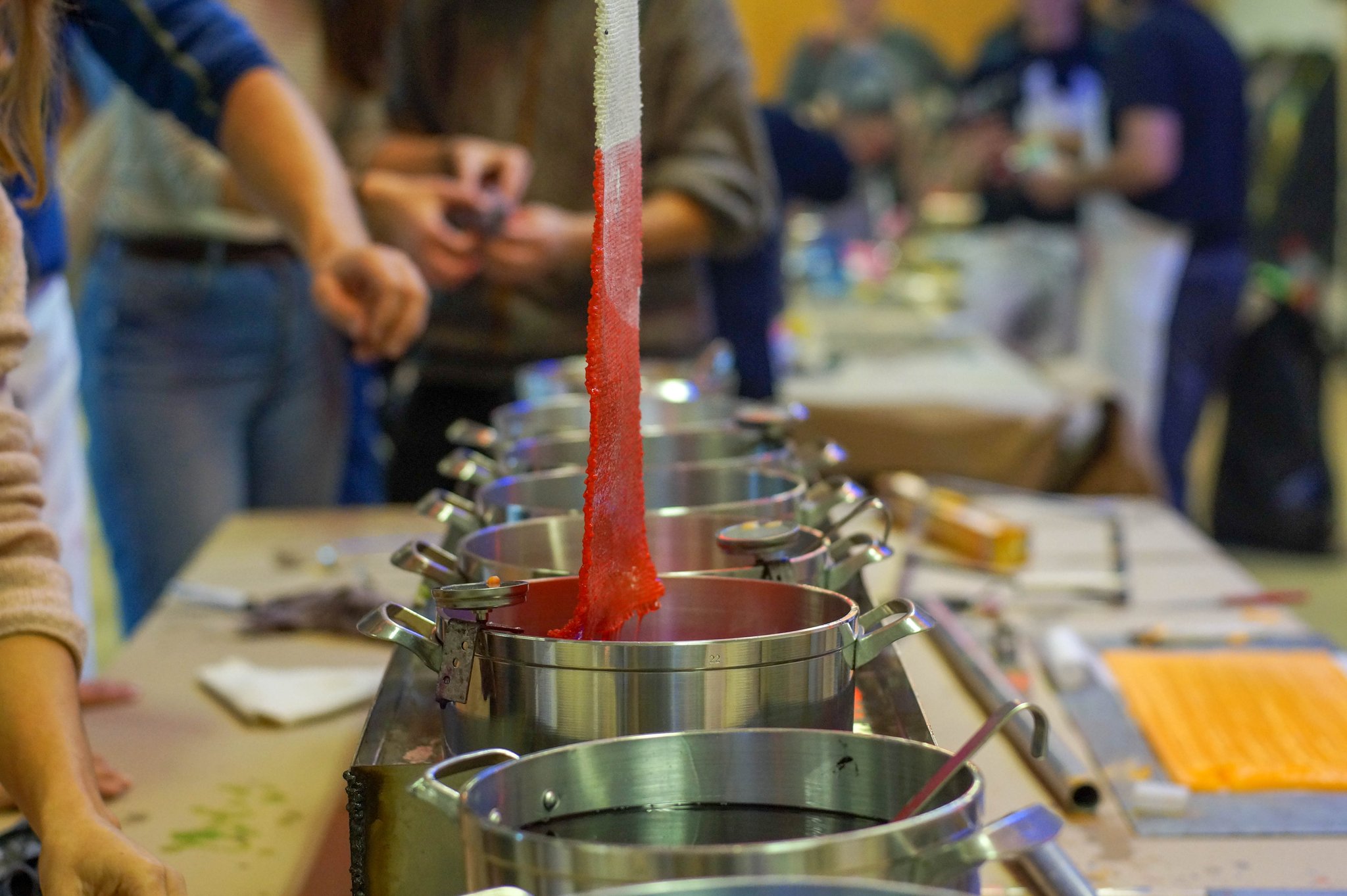 Die Firma Extragon liefert nicht nur Wachsbestandteile und Farbstoffe, sie bietet auch kreative Workshops an. Einen solchen Workshop hat ein grosser Teil des Kerzenziehen-Teams am Samstag in